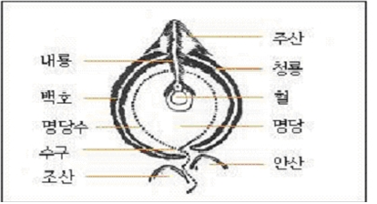 (11) 명당(明堂): 혈 앞에 펼쳐진 넓은 공간, 신하가 임금을 배알하는 장소