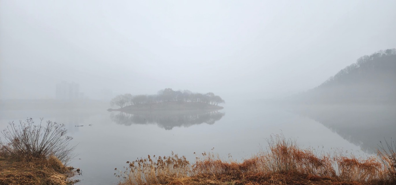 2025년 3월 2일(일) 아침에 빗방울이 흩날리고, 잔뜩 안개가 끼어서 지척을 분간할 수 없다.