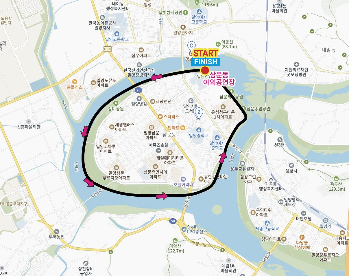 - 15km 밀양의 10개의 다리를 따라 야간경관을 감상하며 걷는 코스