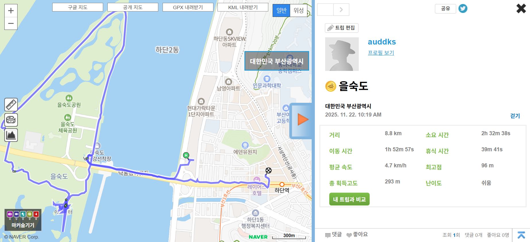 얼마나 건강하고 즐겁게 걸었나 하는 건보가 중요한 것이 아닐까 한다.