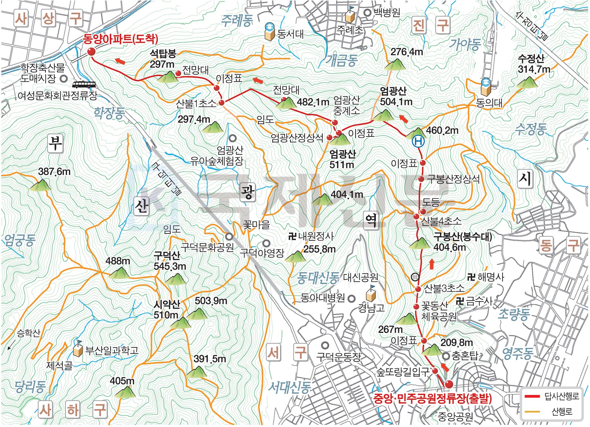 - 중앙·민주공원 출발 도심 산길